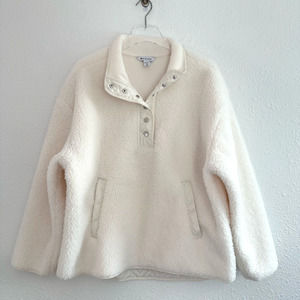 Athleta Cozy Sherpa Snap Sweatshirt Magnolia XL Pullover Fleece Sweater Oversize