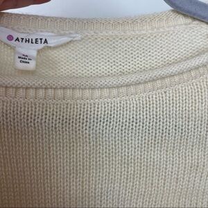 Athleta Cream Gray 100% Wool Color Block Pullover Sweater Size Medium.