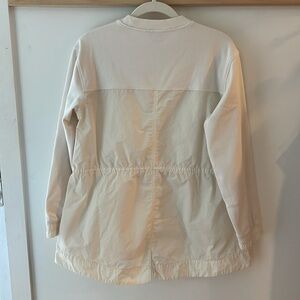 Stylish cream sweatshirt. Features long sleeves and adjustable waist. Perfect for casual wear.