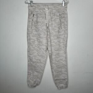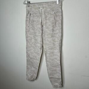 Athleta Cream & Tan Camo Print Cabo Tied Linen Jogger Zip Front Pockets