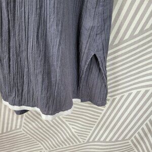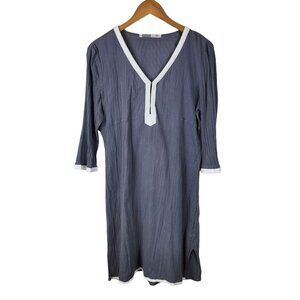 Athleta Crepe Crinkle Tunic Dress Large Gray White Trim 3/4 Sleeves lightweight