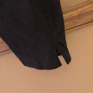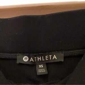 Athleta Cropped Pull on Leggings Zipper pocket Legging Pants Black XS. Small slits at hem. Zipper Pockets at sides, zipper back pocket. Nylon and spandex. Good preowned condition.