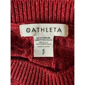 Athleta Crossroads Crew Merino Wool Blend Sweater Red Metallic Womens Size S
