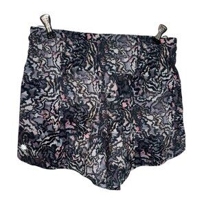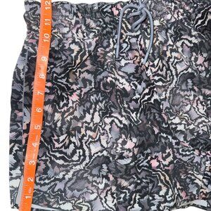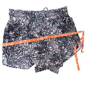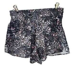 Lightweight and stylish, these Athleta shorts feature a unique abstract print in shades of black, grey, and soft pink. Designed with a comfortable elastic waistband, adjustable drawstring, and airy fabric—perfect for warm weather, lounging, or light workouts. No built in liner like running shorts have.