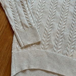 XS See measurements. This sweater is a relaxed fit and would fit a small as well. Chest area measures approx 21” across. Length is slightly high-lo. Front is approx 24” back is approx 26”