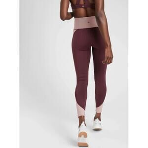 Athleta Crunch Colorblock 7/8 Tight in SuperSonic Burgandy/Pink Size XXS #487398