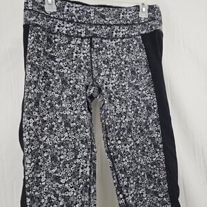 Athleta DITSY STRIPE BALANCE CAPRI Floral Black Women's Size Medium Athletic