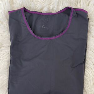 Athleta Dark Gray Athletic Long Sleeve Top with Pink Stitching