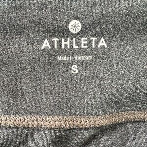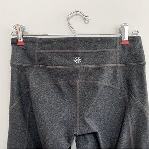 Athleta Dark Gray capri leggings with brown seams are a women's size small (28x18.5), and are in are in excellent preowned condition.