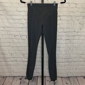 Athleta Dark Grey Ribbed Knit Trim Leggings