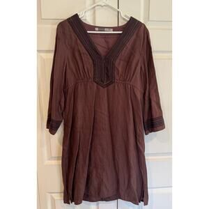 Athleta Deep Burgundy Linen Blend Tunic Dress Bohemian 3/4 Sleeve