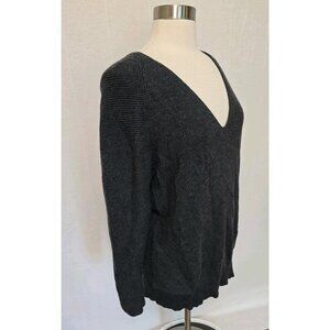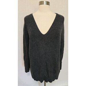 Athleta Deep V Neck Sweater Size Medium Merino Wool Blend Gray