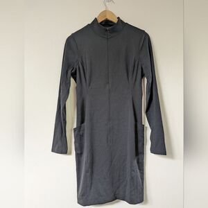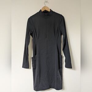 Athleta Delancey Black UPF 50 Sculptek Dress Long Sleeve Zip Medium MP Petite