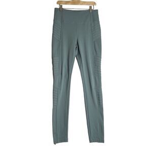 Athleta Delancey Moto Tight Legging Green Zip Pockets High Rise Travel SP Petite