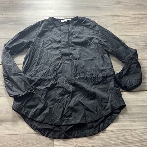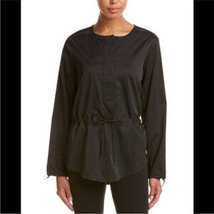 Derek Lam 10 Crosby collab w/ Athleta tunic. Silky soft and stretchy blend of 97% cupro/3% elastane. Cupro is a sustainable fabric made from recycled cotton filers- breathable and tough! Collarless, with snaps at the front. Drawstring waist. Long sleeves with adjustable cords. No pockets. Jet black.