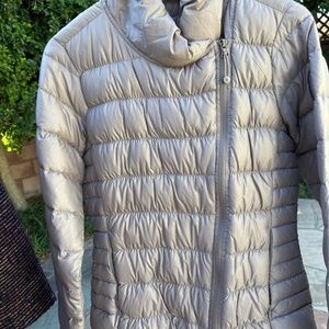 Athleta Downalicious Cropped Puffer Jacket Lavender Silver M Lightweight Warm