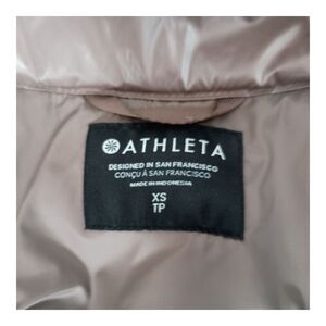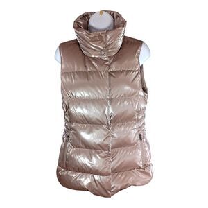 Athleta Downtown Gilet Puffer Vest Goose Down Bronze Metallic Shiny Womens XS