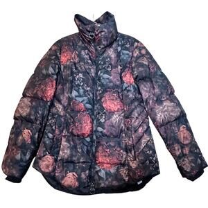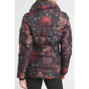 Athleta Downtown Puffer Jacket Black Floral Full Zip Down Fill Coat Sz. M NWOT