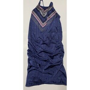 Athleta Dress Stripe Ruched Blue Mosaic Print Sz Small Built In Bra