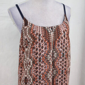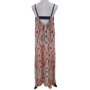 Athleta Dress Womens Large Navy Blue Rust Maxi Chiffon Lined Resort Beach