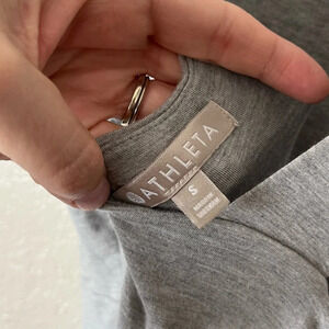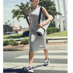 DETAILS: Athleta size small, midi dress in gray, Santorini style, stretchy. Modal spandex, machine wash.