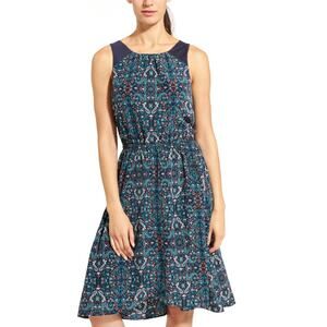 Athleta Dress Womens X Small Blue Red Martinique Floral Print Silky Lightweight