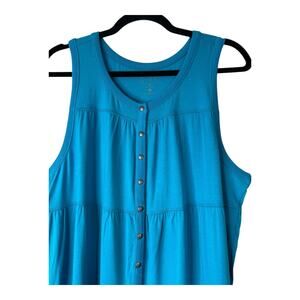 Athleta Drop In Tiered Dress Womens 1X Blue Sleeveless Tank Button Front Midi