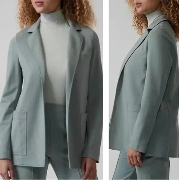 Athleta Eastbound Ponte Stretch Knit Open Front Blazer Jacket Sage Green Size 10