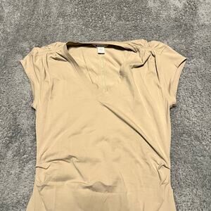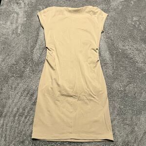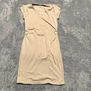 Athleta Effortless Knit Tee Dress Womens Small Tan V Neck Short Sleeve Ruched