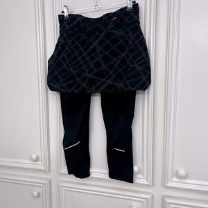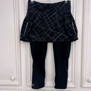 Athleta Elation 2-in-1 7/8 Tights RETIRED Black Patterned Leggings with Skirt XS