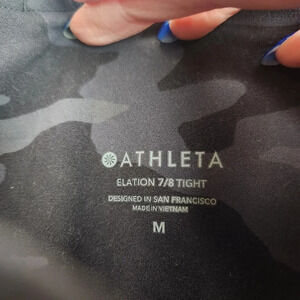 Athleta Elation 7/8 Tights Camo Size Medium High Rise. Pre owned in great condition with very little wear showing. Measurements are in the photos.