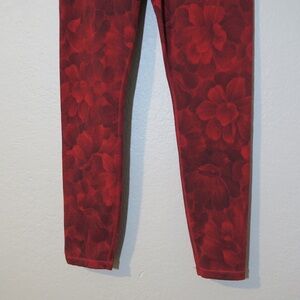 Floral red leggings by Athleta, high rise waistband, rated UPF 50+, gentle compression. Great preloved condition.