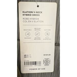 The Athleta Elation V-Neck Hybrid Dress in Size Medium Tall is a stylish and flattering option for women looking for a versatile and comfortable dress. Made from a blend of polyester, nylon, and spandex, the dress features a sleeveless design, V-neckline, and a pullover closure for easy wear. The long dress length and fit & flare style offer a classic look that can be dressed up or down for any occasion. Additionally, the lightweight material and built-in bra provide added comfort and support, making this dress a convenient and practical choice for everyday wear. Pit to pit is 16 inches. Top of strap to bottom is 49 inches.