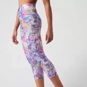 Athleta Elation Yoga Workout Floral Capri Leggings In Bloom Chrome Blue Size S.