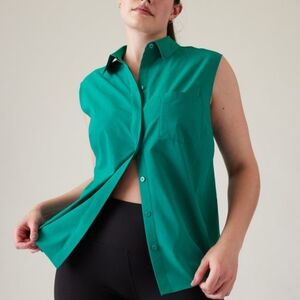 Athleta Emerald Green Teal Sleeveless Collared Button-Up Everlasting Tank Office