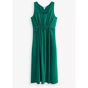Athleta Emerald Green Echo Midi Dress Size Small Ruched Waist Maxi Tank
