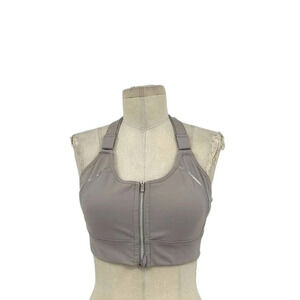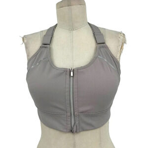 Athleta Empower Sports Bra Taupe Grey Zip Front Brami Racerback Size Medium