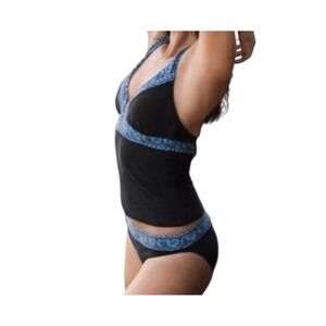 Athleta Encinitas Tara Black Striped Halter Swim Dress