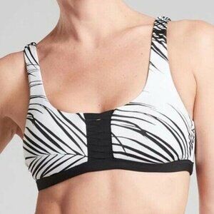 Athleta Encinitas Tara Black and White Striped Underwire Halter Swim Dress