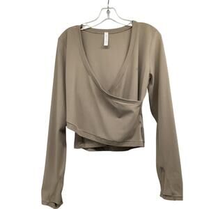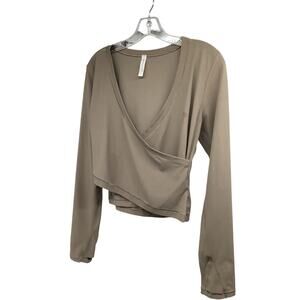 Athleta Encore Taupe Wrap Ballet V-Neck Yoga Top Shirt Large Stretch