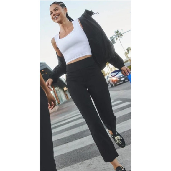 Athleta Endless High Rise Pants in classic black, women’s size 14. These versatile pull-on stretch trousers are designed for comfort and style, with a flattering high-rise fit and easy stretch fabric. Perfect for work, casual wear, or travel, these pants transition seamlessly from day to night.