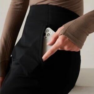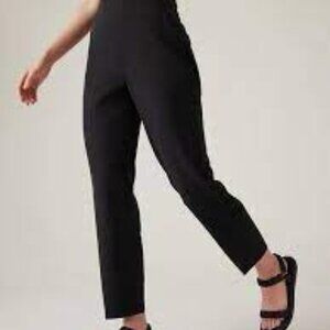 These black pants in size 6 are perfect fir commuting, work, and travel. The fabric is refined, subtly textured, and perfectly stretchy with a waistband that is buttery soft and "holds you in" day comfortably.
