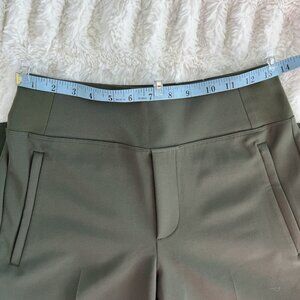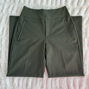 Women's Athleta Endless High Rise Pant, size: 0, inseam: 27 1/2", fit: semi-fitted, color: pine (green). Perfect for work, travel, or just running around. Features: side zip pockets, soft waistband, back drop-in pockets, 86% Recycled Polyester/14% Spandex, machine washable. In great condition, barely ever worn.