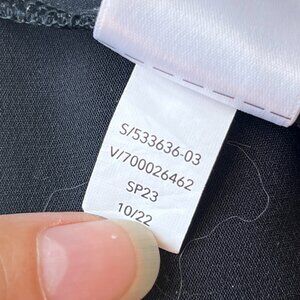Sleek black track pants. Comfortable fit. Perfect for casual wear. No flaws or issues they are just a bit too loose on me!