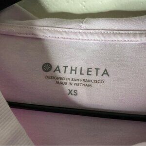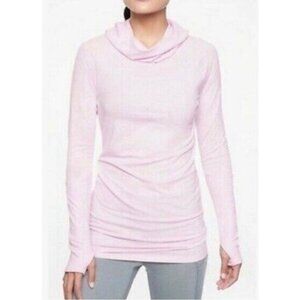 Essence Hooded Tunic Pullover in Light Pink from Athleta. Cowl neck. Full length sleeves with thumbholes. Super soft Lyocell blend fabric. Size XS. Good preowned condition with no tears or stains.