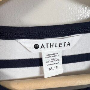 Athleta Essential Tee Dress Size Medium Petite Blue Stripe Minimal Casual Comfy