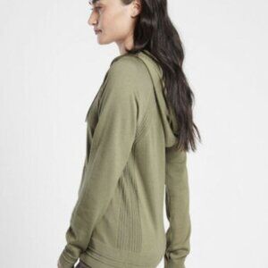 Athleta Evergreen Hoodie Knit Sweater Olive Green Size XS