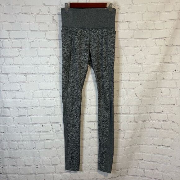 These Athleta leggings feature a sleek heather gray color and are crafted from a stretchy, form-fitting fabric for ultimate comfort and flexibility. The high-rise waistband offers added support, while the full-length design ensures a flattering fit from waist to ankle.