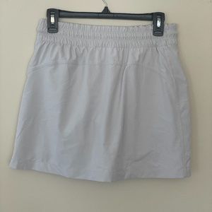 Light Gray Althleta Skort Skirt Shorts. Birch Gray. Built-in shorts, Elastic waistband with drawstring, Fully Zips up the front, and features Two front zippered pockets.
