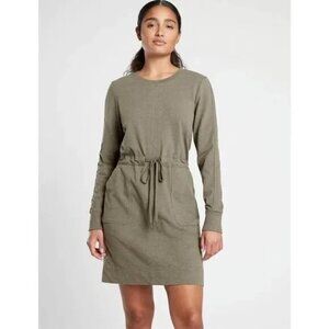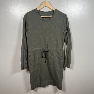 Athleta Farallon Drawstring Dress Size XS Heather Green Long Sleeve Comfy Casual